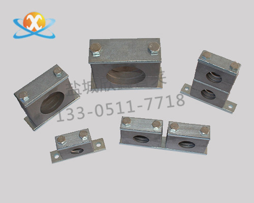 3、疊起裝配,導(dǎo)軌可焊在基礎(chǔ)上,或用螺釘固定,先裝上下半個管夾身,放上需固定的管子再放上上半個管夾身,用螺釘固定,通過防松蓋闆防止它轉動。然後安裝第二個管夾,方法同上。